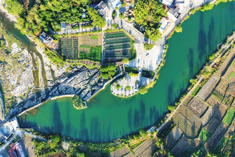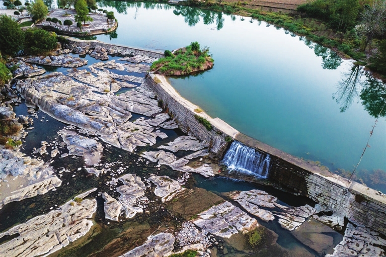 11月6日拍摄的白霓古堰(无人机照片)。