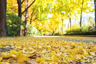 树种不同,落叶时间不同。就连同一树种,不同地段也会导致落叶情况不相同。“你看郭大姐负责的这段在龙潭公园西侧,临近黑龙潭,树木吸收的水分就多一些,杨树叶子现在还是绿的。”李建生说,而从旱西关往南,路西的杨树就已经有黄叶了。
