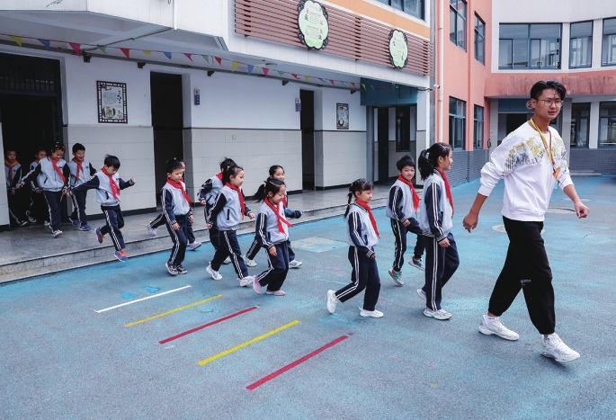 “我们要求所有孩子下课后必须出教室,哪怕是喜静不喜动的女生,我们都鼓励她们出去走走。”该校大队辅导员杨清义介绍。