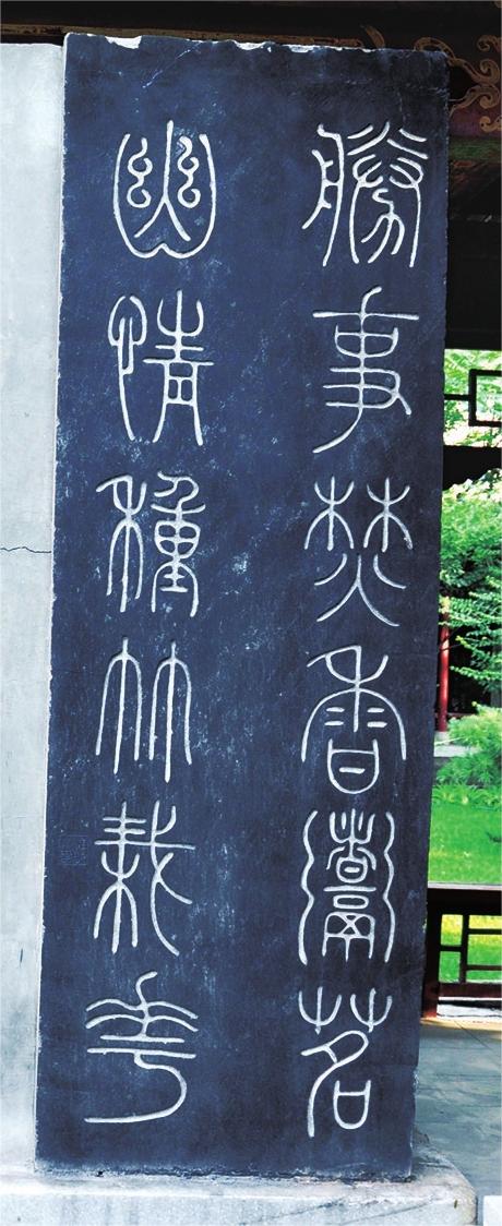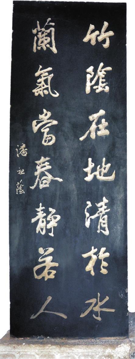 “竹阴在地清于水,兰气当春静若人”为《兰亭集序》经典集字联,见于程廷敬故居、晋祠、常家庄园等处。寓意君子有节似竹,处世淡然若水;兰花通常生长在深山幽僻之处,如陈子昂《感遇》所云“幽独空林色,朱蕤冒紫茎”,也是自屈原楚辞以来的寓意人格节操高洁的典型意象,这副对联不仅是集《兰亭集序》而得,更进一步用“竹”“兰”以喻君子高尚纯粹的节操和品格,令人读之则心生向往,获得内心的安宁。