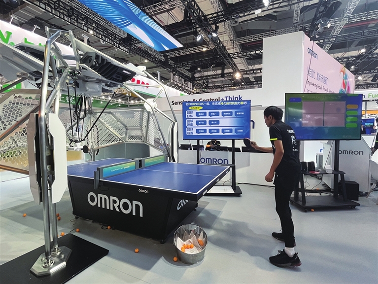 休息时,那位体育运动爱好者感叹,“太厉害了,根本接不住!”据现场工作人员孙晖介绍,这是欧姆龙的乒乓球教练机器人FORPHEUS,目前已升级至第八代。其核心技术是“传感控制+思考”,能根据对方发球特点进行自我调整,打球质量非常高;同时还增加了人机“对话”的交互功能,能够进一步深入理解玩家的需求。
