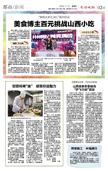 作为“锦绣太原正当红”第三季——2023年太原城市品牌系列宣传活动之一,“锦绣太原正当红”之千年古城美食挑战赛邀请了“太原吃货联盟”“摄影情”等9位知名博主,通过选购、品尝山西美食,来宣传我省历史悠久的美食文化。活动中,主持人将9位美食博主分为3组,每组发放100元美食基金。要求博主们在半个小时内,不重复购买山西美食种类,且要现场全部吃完,购买美食种类数量最多、美食基金余额剩余最少者获胜。