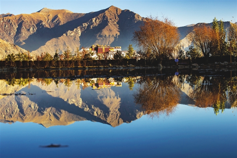 时值初冬,拉萨空气通透、色彩缤纷。不少市民和游客来到位于布达拉宫正南方的南山公园观赏美景。