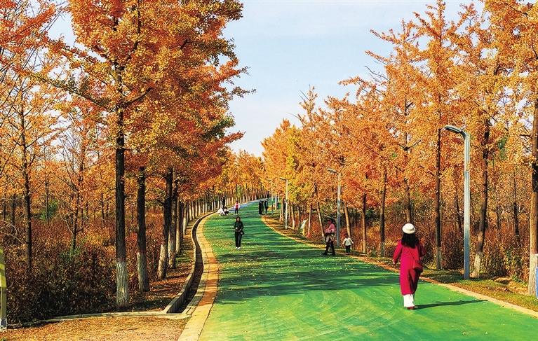 拍摄时间:2023年11月 拍摄地点:晋中市榆次区 深秋时节,榆次百草坡森林植物园的银杏顶霜傲寒,不屈地展示着自己那满头的金色,仿佛在告诉人们,秋天马上就要与我们告别。 杨靳葆 摄