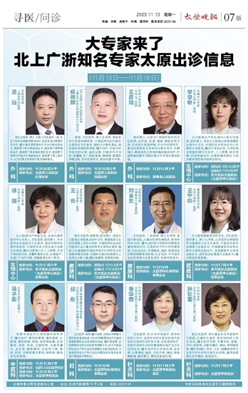 大专家来了 北上广浙知名专家太原出诊信息