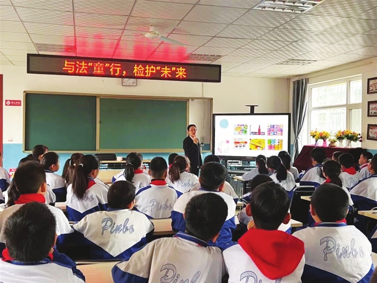 活动中,担任学校法治副校长的检察干警走进课堂开讲座,围绕毒品、文身、校园欺凌等问题,用通俗易懂的语言普及法律知识、传授安全防护锦囊,让孩子们学会自我保护、远离违法犯罪。同时,鼓励孩子们在受到侵害时要及时告诉家长和老师,勇敢拿起法律武器维护自己的合法权益。丰富的课程内容和轻松有趣的授课方式,让检察官在现场“圈粉无数”,赢得阵阵掌声。同学们纷纷表示,此次法治宣传内容丰富,增长了不少法律知识,以后要继续加强法治学习,做一名学法、懂法、守法、用法的好学生。