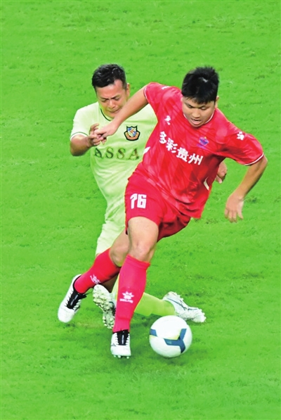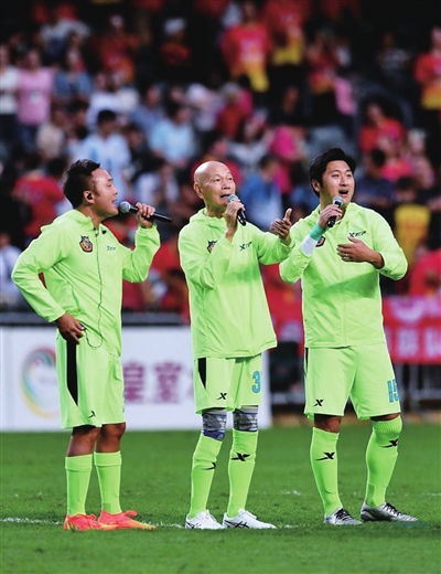 据了解,香港明星足球队8月曾前往贵州参加全国美食足球友谊赛,对战榕江“村超”联队。此次榕江“村超”联队应香港明星足球队邀请,来香港进行比赛。“村超”来香港,还带来了榕江的土特产品、非遗节目到香港展示。“村超”拉拉队10日在尖沙咀进行了一次民族服装快闪表演,11日的比赛间隙也表演了多支民族舞蹈。香港明星足球队的艺人则献唱数首经典老歌,引发现场观众激情合唱。