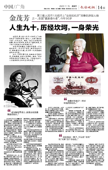 第三套人民币1元纸币上“女拖拉机手”肖像的原型人物之一,全国“最美奋斗者”,今年90岁~~~