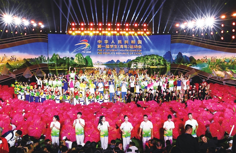 11月15日,闭幕式现场。当日,第一届全国学生(青年)运动会闭幕式在广西南宁举行。 新华社 发