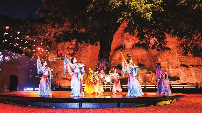 在山西云冈石窟,一场名为“又见云冈”的大型实景演出上演,1000余人现场观看,近100万人线上观看,人们被经由现代艺术演绎的传统文化之美所打动。