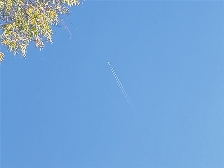 当以上条件都满足时,才会形成这种尾气轨迹。所以,有时能看见飞机有尾迹,有时看不到。有时尾迹可以停留很久,有时又很快消失。这些都与空气温度和湿度有关。