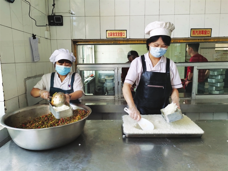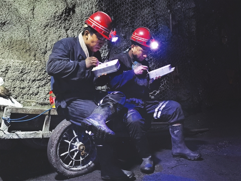 “在井下能吃上热腾腾的大米和肉菜,大家很知足。”说起矿上的班中餐,工程二区掘进五队队长李海涛打开了话匣子,“以前条件一般,我们的师傅们都是带个干饼子就下井了,现在我们在井下有吃有喝,真的很幸福……”