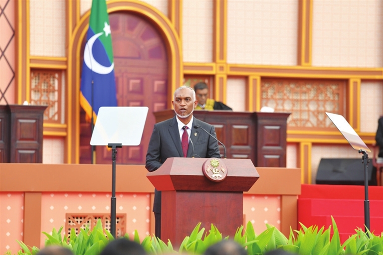 穆伊兹17日宣誓就职。他在发表就职讲话时承诺,将确保马尔代夫没有任何外国军事存在,以维护国家独立和主权。