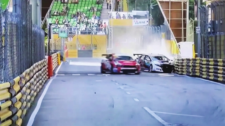 郭富城本次受邀加入壳牌捷凯领克车队参赛,驾驶一辆号码为“88”的红色跑车,与其他选手一起争夺冠军。从现场视频可以看出,郭富城在一个弯道处被后方的一辆黑白色跑车超越,随后双方发生了碰撞,郭富城的跑车先是撞到对方,然后又向左撞到围栏,紧接着又撞到失去方向的对方车辆。而对方的跑车则直接撞到围栏,车头受损严重,冒起了浓烟。郭富城的“88”号车虽然还能行驶,但似乎已经出现了故障,双方只能退赛,郭富城因为撞车被加罚30秒,被撞的选手也无缘决赛。