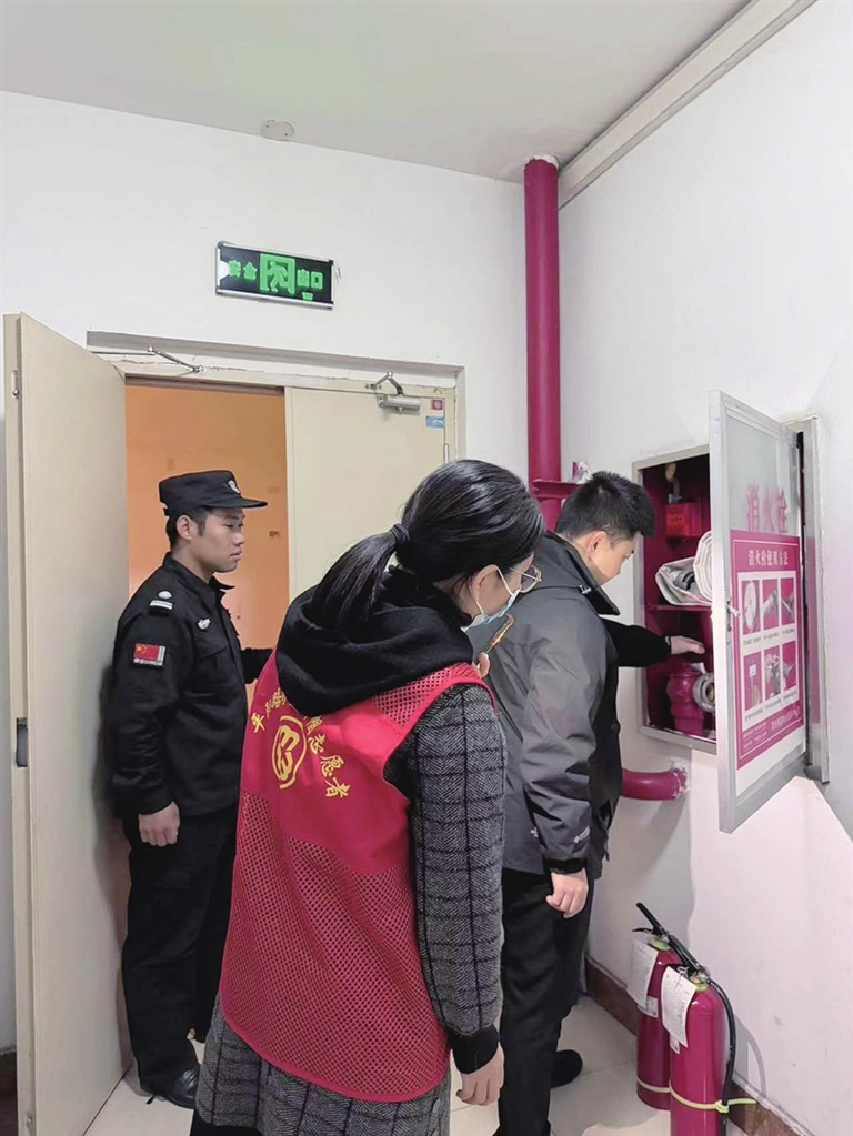 11月20日,前机社区联合辖区各小区的物业公司开展“防患于未‘燃’,以行动筑起安全防线”活动。检查过程中,工作人员仔细检查各小区的消防设施是否完备,灭火器是否在使用期限内,消防栓是否可以正常使用,发现问题,督促整改,全力为居民的正常生活保驾护航。 周利芳 刘静怡 摄