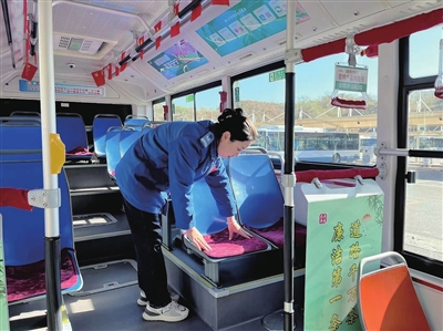 “车上老年乘客偏多,自从装了坐垫后,大家都说坐着舒服,我听了很欣慰。现在我想让更多的车上都能铺一些坐垫,让更多的乘客都感受到寒冬里的暖意。”随着今年冷空气到来,李灵精心采购了一批以红色为主的布料,制作了一批坐垫,并在去年基础上增加了扶手套。同时,在车厢放置了便民服务箱和急救包,里面配有消毒液、创可贴、口罩、晕车药、急救药等。希望能给乘客提供方便,让他们的出行变得更加温暖、舒心。
