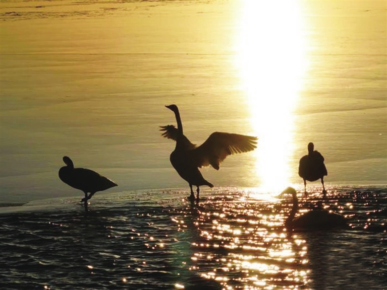 高原初冬,祁连山国家公园签约摄影师在青海湖南岸的海南藏族自治州共和县石乃亥镇附近和青海湖西岸的铁卜加河口,拍摄到上百只大天鹅在湖面上溜冰、飞翔、游弋的画面。初升的暖阳下湖面半冰半水,成群的大天鹅沐浴出水宛如仙子。每年冬季,青海湖都会迎来数百只大天鹅越冬。