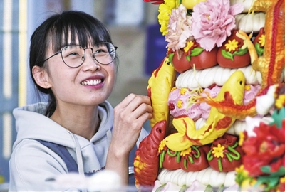 2022年,田晓带着面花来到北京。她依托网络销售和展示平台展示她的作品,同时创立工作室、开办学习班,向年轻人群体推广这项古老的技艺和民间文化。