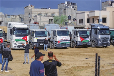 11月20日,装载野战医院设备的货车停在加沙地带南部城市汗尤尼斯。