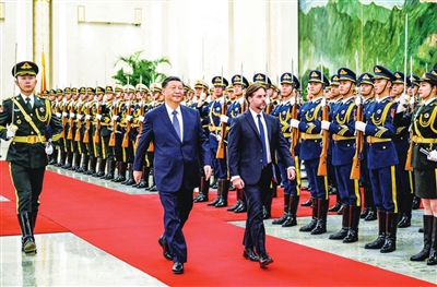 习近平指出,2023年是中乌建交35周年和乌拉圭加入共建“一带一路”倡议5周年。建交35年来,两国始终坚持相互尊重、平等相待、合作共赢,各领域交流合作蓬勃发展。特别是面对新冠疫情,两国守望相助、同心抗疫,中乌战略伙伴关系得到升华。中方愿同乌方一道,以建立全面战略伙伴关系为新起点、新坐标,提升双边关系水平,丰富两国合作内涵,将中乌关系打造成为不同体量、不同制度、不同文化国家团结合作的典范,更好服务各自国家发展,增进两国人民福祉。