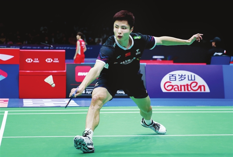11月22日,石宇奇在比赛中回球。当日,在深圳举行的2023中国羽毛球大师赛男子单打首轮比赛中,中国选手石宇奇以2比0战胜印度选手拉克什亚,晋级16强。 新华社 发