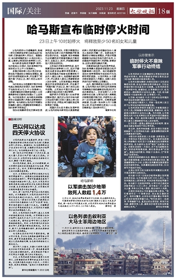 ~~~23日上午10时起停火 将释放至少50名妇女和儿童