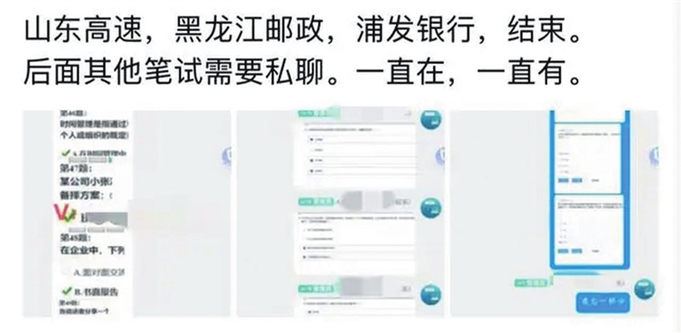 陆续收到银行、央企的笔试通知后,应届毕业生小程开始在网上四处搜索攻略。“有人专门分享备考资料包,里面包含历年真题和模拟题,可以拿来练练手。”不过,小程发现其中部分帖子暗藏玄机,“表述中会提到‘助攻’,并特意强调正确率高,甚至承诺‘包过’,配的测评截图上还悄悄附上微信号或QQ号。”