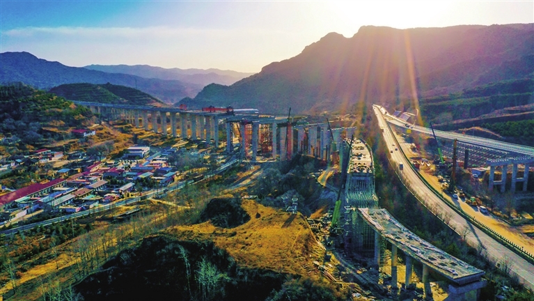 11月26日,太原西北二环高速ZH10项目建设工地,施工人员在铺设桥面。西北二环高速全面通车后,我市将形成以高速铁路环、城际高速路环、国道一级公路环、旅游公路环、绕城快速路环为主骨架的“五环联动”。 韩双喜 摄
