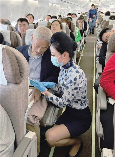 “谢谢,一路上多亏有你们照顾。”一位老大娘拉着乘务长的手,感激地说。这是近日从太原飞往三亚MU6937航班上的一幕。在飞机起飞一个多小时后,这位旅客感到身体不适。乘务长闻讯来到座位旁,见老人脸色苍白、嘴唇青紫。同行的老伴说,她患有糖尿病、肺部疾病等基础病,登机匆忙,忘了服药。了解情况后,乘务组立即为老人测量血压、血氧,采取急救措施,并安排乘务员专人守护。