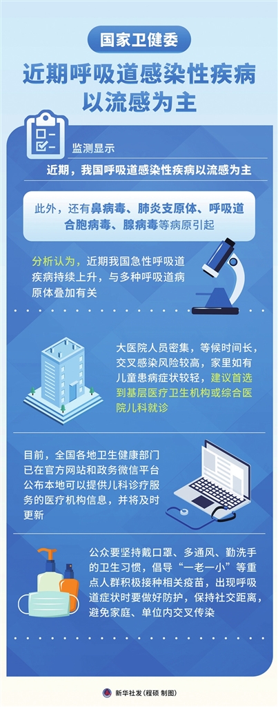 米锋提示,大医院人员密集,等候时间长,交叉感染风险较高,家里如有儿童患病症状较轻,建议首选到基层医疗卫生机构或综合医院儿科就诊。公众要坚持戴口罩、多通风、勤洗手的卫生习惯,出现呼吸道症状时做好防护。