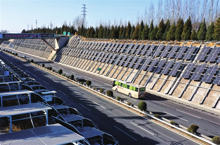 11月27日,并网投运的二广高速蓝色光伏板组群成为亮点。近年来,山西交控集团积极探索“交通+光伏”发展新路径,利用高速公路边坡发展分布式光伏发电,让高速公路沿线借“光”披“绿”,实现与周边产业融合发展。 韩双喜 摄