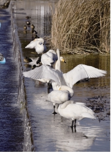 11月22日,天鹅在密云水库流域太师屯小南河内休憩。
