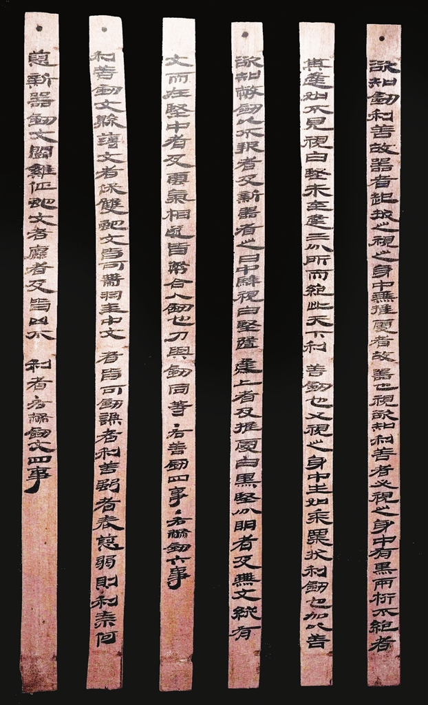 1974年出土的《塞上烽火品约》,共17枚简册,描述和记载了长城防御工事分布、戍守士卒岗位设置、烽火信息传递系统,以及长城戍守官兵的日常生活等,反映了西汉军事制度的完善与发达。