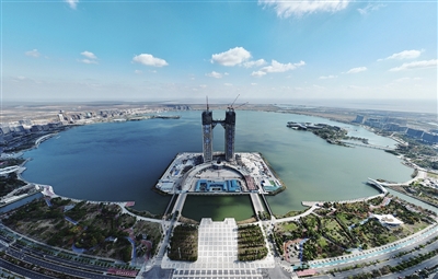 近日,位于中国(上海)自由贸易试验区临港新片区、由中建二局华东公司承建的临港西岛中银金融中心项目建设取得新进展,项目塔楼之间相对设置的两个总重达2200吨的钢结构锥体提升完成,南北两座塔楼成功“牵手”。临港西岛中银金融中心项目总建筑面积28.25万平方米,建筑主体为南北两座高200米的双子塔楼,中心建成后将成为以金融总部办公为主体的大型城市综合体。