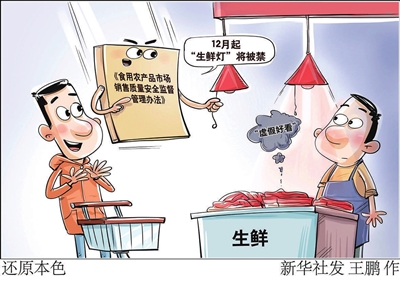 受访的业内人士表示,“生鲜灯”禁用体现了国家对于食品安全和消费者权益保护的高度重视。随着办法的实施,更需要商家自律、行业规范和市场监管共同发力,以办法为基准,持续明确实施细则守护“舌尖上的安全”。
