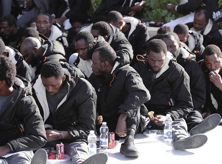 11月28日,在利比亚的黎波里,非法移民等待被利比亚当局遣返。 新华社 发