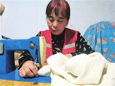 11月28日、29日,连续两个晚上,几名网格员在各自家里“加班”。她们家里都有缝纫机。“哒哒哒,哒哒哒”,在针头的不断运动中,线脚走得又直又密,衣物的破洞都被补好了,很结实。