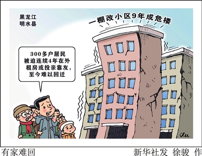“本来是惠民的棚改工程,现在却成了‘伤心工程’”“4年多了危楼还没开始拆,更别说重建了”……在和谐家园小区,一些居民指着无人居住的楼栋对记者说。