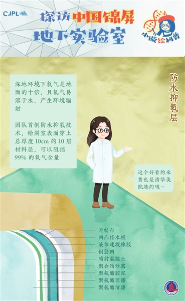 2014年,锦屏地下实验室二期项目获批国家重大科技基础设施,规划地下可用实验空间由原来的4000立方米增加到33万立方米。项目施工过程中,首创防水抑氡工艺、研发低本底设备材料,最大限度控制实验室辐射本底,打造“纯净”实验环境。