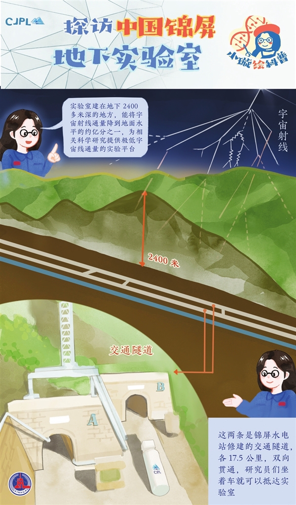 锦屏大设施是中国锦屏地下实验室二期项目,位于四川省凉山彝族自治州锦屏山地下2400米处,总容积33万立方米。实验室宇宙线通量仅为地表的一亿分之一,具备“极低环境氡析出”“极低环境辐射”“超低宇宙线通量”“超洁净空间”等多种优势。