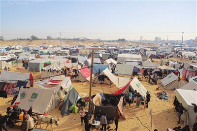 这是12月8日在加沙地带南部城市拉法拍摄的临时营地。