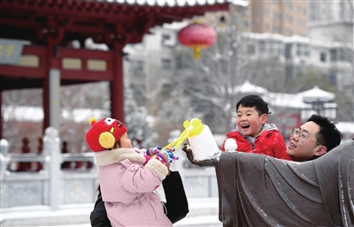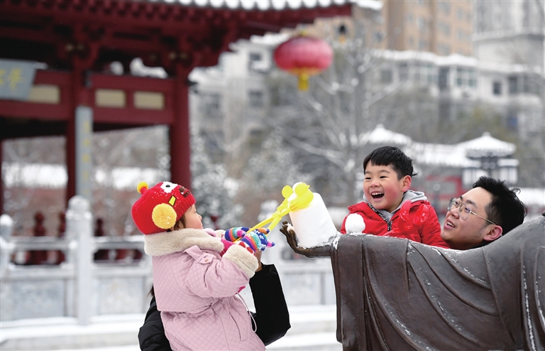 随着我市迎来大范围降雪,各大公园银装素裹,成为市民赏雪的好去处。12月11日,狄仁杰文化公园,市民游玩赏景,享受雪趣。 牛利敏 摄