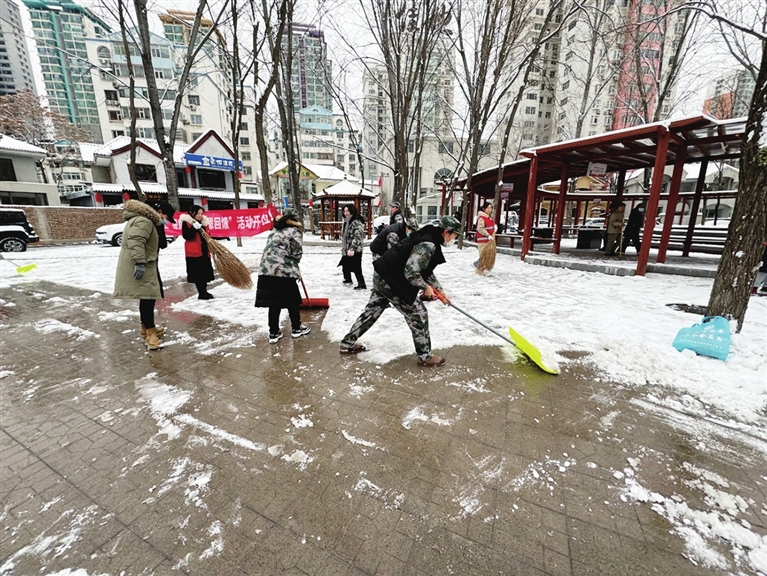营盘街道为积极应对极端天气,推动各党支部发挥好“现场指挥部”作用,领导并动员党员志愿者带头参与清雪除冰。大家身穿红马甲,手拿铁锹、扫把等工具冲锋在前,不畏严寒,齐心协力,配合默契,对主干道、背街小巷等积雪较厚的区域进行清理。室外虽寒冷,大家干活儿的热情却高涨,欢声笑语中,一条条干净、整洁、畅通的道路逐渐呈现在眼前。