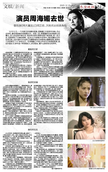 ~~~曾饰演《倚天屠龙记》周芷若、灭绝师太经典角色