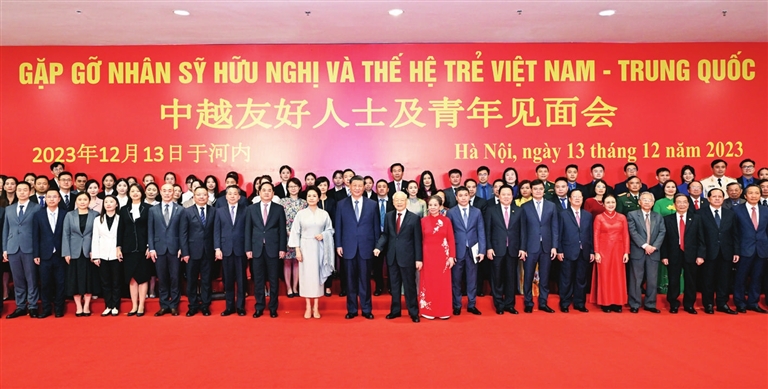 回首过去,我们志同道合、守望相助。近代以来,中越两党和两国人民坚守共同理想信念,在争取国家独立和民族解放事业进程中风雨同舟、相互支持。胡志明主席的著名诗句“越中情谊深、同志加兄弟”,成为两国人民对那段峥嵘岁月难以磨灭的历史记忆。立足当下,我们初心如磐、合作共赢。建立全面战略合作伙伴关系15年来,中越两党坚持以人民为中心,大力推进互利合作,给两国人民带来实实在在的利益。展望未来,我们前途相关、命运与共。中国正在以中国式现代化全面推进强国建设、民族复兴伟业,越南正在大力推进工业化现代化建设。中国坚定不移走和平发展道路,坚持与邻为善、以邻为伴的周边外交方针和亲诚惠容的周边外交理念,让中国式现代化更多惠及周边国家。