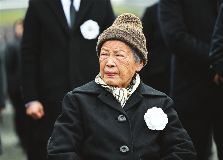 95岁高龄的南京大屠杀幸存者艾义英垂泪。她已经不记得这是第几次来到国家公祭仪式现场,在86年前那场浩劫中失去了6位亲人的老人发自肺腑地说:“历史不能忘,记住是为了不再重演。”老人的深刻感悟,正是国家公祭的根本用意所在。