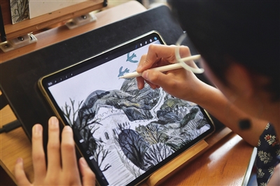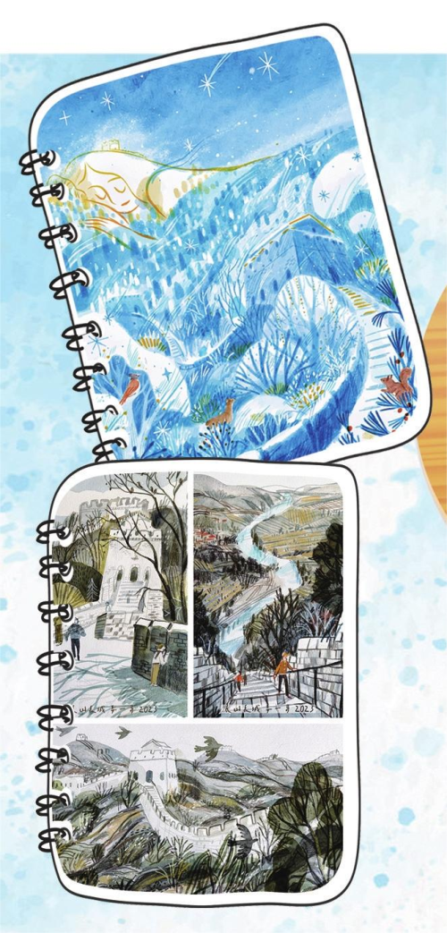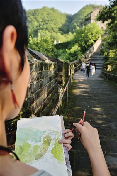 理性、沉稳的虎山长城,与姜一哥感性、灵动的笔触,交织融合在一幅幅画作中。在社交平台上,姜一哥的长城画作引起了很多网友的兴趣,她也会在线上分享虎山长城的故事。她说:“希望通过画作,让大家看到一个更温柔、更浪漫、更亲切的长城,也让孩子们深入了解长城的历史和文化。”