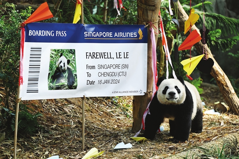 12月13日,新加坡河川生态园为首只在新加坡出生的大熊猫“叻叻”举行欢送会。大熊猫“叻叻”将经过隔离后于2024年1月16日启程返回中国,此次是“叻叻”在新加坡最后一次与公众见面。