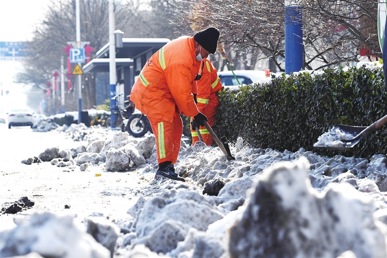 各级园林部门组织人员,在各公园、街心游园积极清雪除冰。