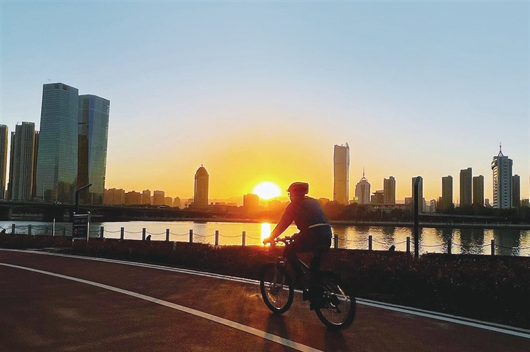 骑行“打卡”滨河自行车道,欣赏沿途缤纷色彩,呼吸新鲜空气,感受太原的美丽,心情为之愉悦。红色的自行车双向车道,像一条飘舞的彩带,成为骑行人心目中的诗和远方。